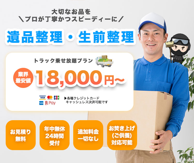 - 遺品が多く、遺族だけでは整理ができない